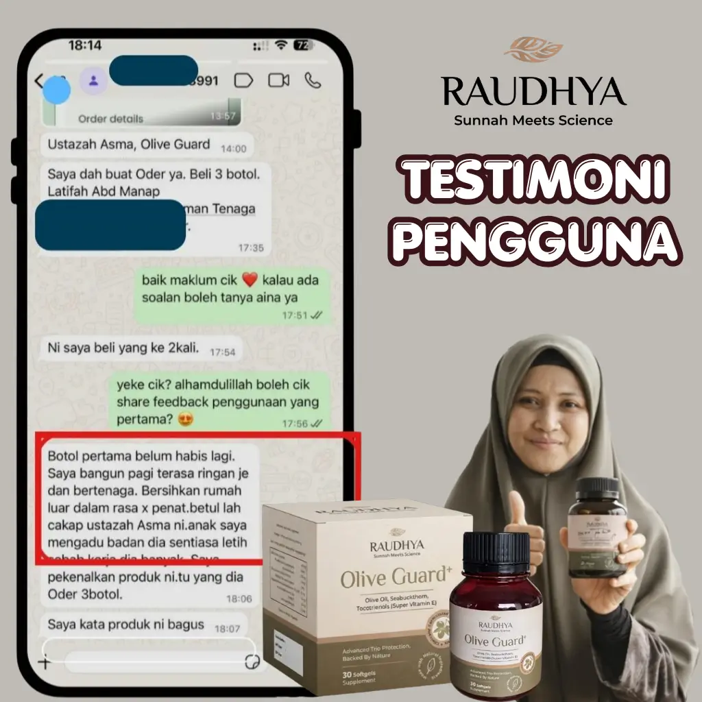 ⭐⭐⭐⭐⭐ 4.9/5 Dari 56,000+ Pengguna Raudhya Olive Guard+